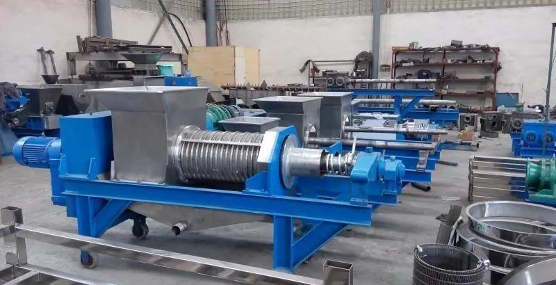 螺旋壓榨機是一種利用物理擠壓方式進行脫水的設備,該設備由驅動系統、進料箱、螺旋絞龍、篩網、氣動阻料裝置、集水槽、機架等部分構成,物料從進料箱進入設備,在螺旋絞龍的輸送下受到逐級遞進壓力擠壓,多余水分經過篩網由出液口排出,去水分物料在螺旋絞龍的繼續輸送下,頂開阻料裝置由出料口排出設備。我公司所生產螺旋壓榨機經過數百次理論推導計算和實驗檢驗,總結眾多用戶在多年使用過程中的真實效果反饋,升級為一系列成熟設備,對客戶不同待脫水物料分析,采用不同技術參數,真正做到低能耗、高產出、低水分,為物料進行二次循環利用節省大量加工成本。