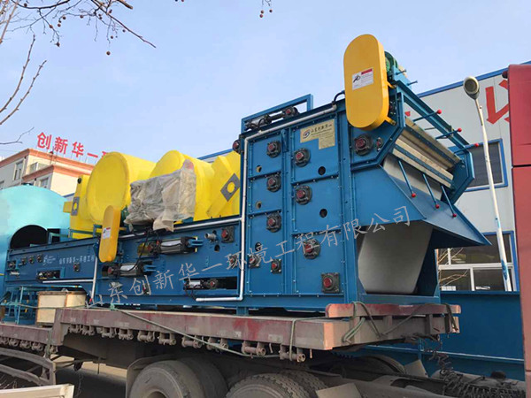 1、采用超長過濾與強力對輥壓榨于一體的脫水方式,處理量大,壓出來的濾餅含水率比普通機低10%。