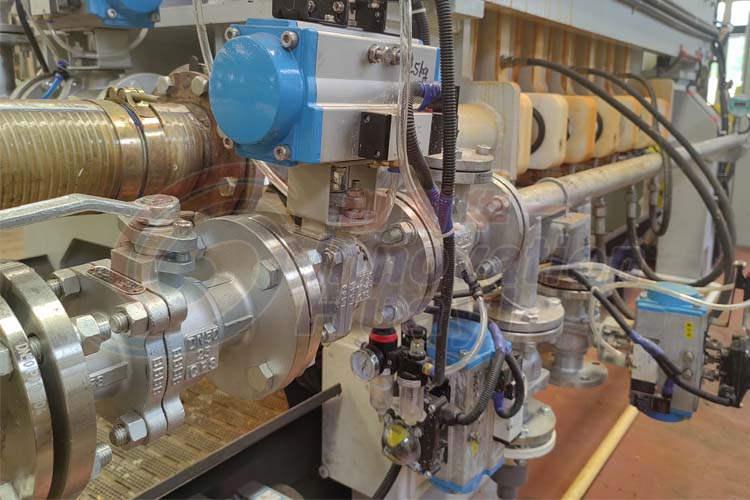 4、濾板開啟: 在擠壓過程結束后,釋放壓緊油缸的壓力拉開濾板。