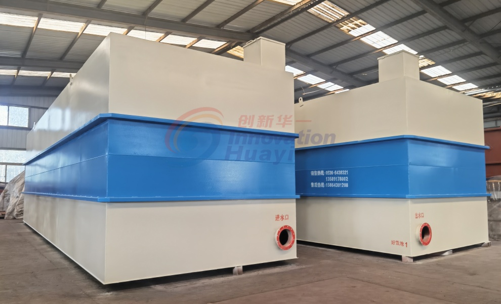 根據水質特點,要先去除懸浮物與色度,采用混凝沉淀工藝,有機物、氨氮、有機磷采用生化處理,因污染物濃度高,從成本及處理效果考慮,采用厭氧+好氧處理工藝。鑒于養殖業的薄利行業,山東創新華一環境工程有限公司研發除了養殖一體化污水設備,針對中小型養殖業主。